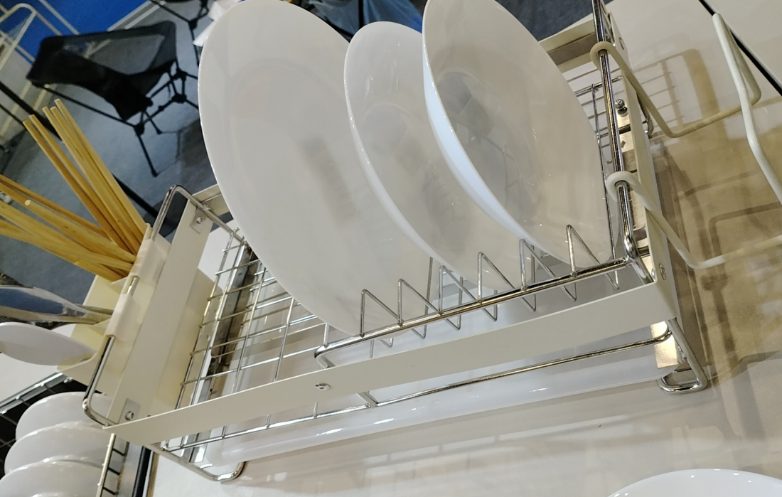 Keittiön säilytyssarja: Erottuva oli ruostumattomasta teräksestä valmistettu jatkettava astiankuivausteline, joka on suunniteltu optimaaliseen toimivuuteen ja tilan tehokkuuteen. Sarjaan kuuluu myös monitoimiset seinään asennettavat telineet ja magneettiset veitsenpidikkeet, jotka kaikki on muotoiltu minimalistisella estetiikalla, jotka sopivat kompakteihin moderneihin keittiöihin.