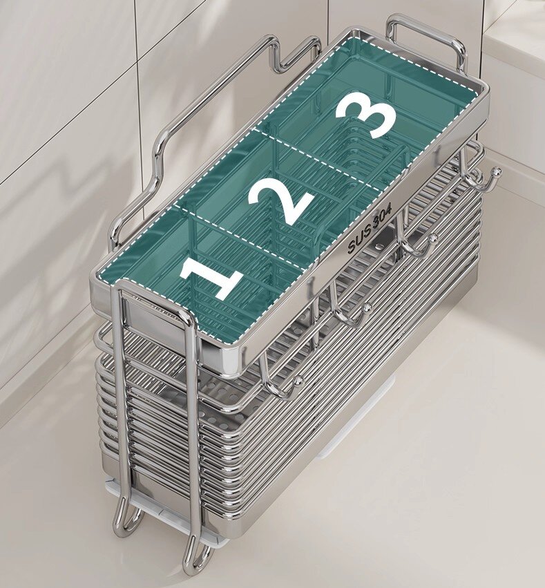 Yksi Three Frames -astiatelineen erottuvista ominaisuuksista on sen älykäs kolmiosastoinen muotoilu. Toisin kuin monet yksiosastoiset pidikkeet, jotka jättävät astiat sekaisin, tämä muotoilu mahdollistaa luokittelun. Voit helposti erottaa lusikat, haarukat ja veitset tai jopa omistaa osan erikoisvälineille, kuten pihdeille tai lastalle. Tämä ei ainoastaan yksinkertaista tarvitsemasi työkalun löytämistä kiireessä, vaan myös pitää työtasosi siistinä. Joissakin muissa pidikkeissä voi olla yksi iso tila, joka voi nopeasti muuttua kaoottiseksi sotkuksi, jossa ruokailuvälineet putoavat ja takertuvat. Kolmen kehyksen astiapidike, jonka hyvin harkittu asettelu varmistaa, että jokaiselle astialle on oma paikkansa, mikä edistää organisoidumpaa ja tehokkaampaa keittiötä.